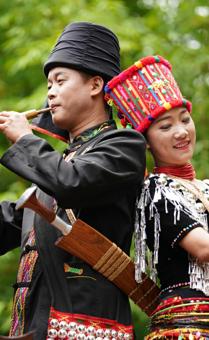 云南壯族主要聚居在文山州,人口114萬,民間的村寨大多依山傍水。壯族擅長種植水稻,有太陽崇拜和長老崇拜的風(fēng)俗,視銅鼓為重器,厚愛銀飾,善烹制五色花米飯,能歌善舞,熱情好客。進(jìn)入景區(qū)壯族村,迎面有祭祀龍王的龍柱,兩邊是先民繪制的天王崖畫和為紀(jì)念傳說洪水泛濫時(shí)幫助先民度過劫難而建的石葫蘆亭。祭祀玉皇大帝的昊天閣和傳說能驅(qū)邪納福的碩大銅鼓聳立在廣場(chǎng)兩側(cè)。桿欄式和麻欄式民居、壯族青年社交休憩的“情廊”、村...
